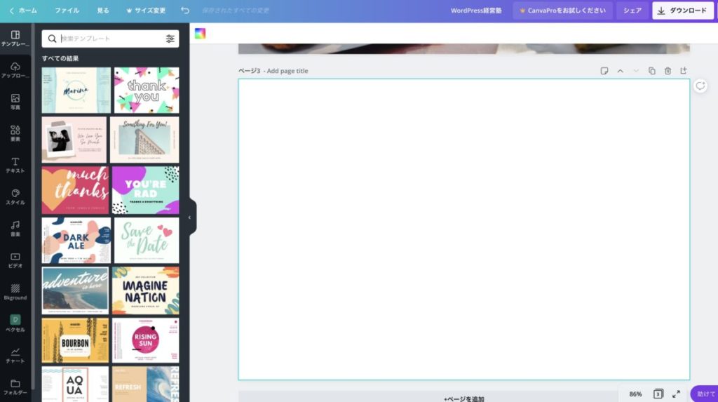 早速、キャンバを使って、アイキャッチ画像を作成していきます。